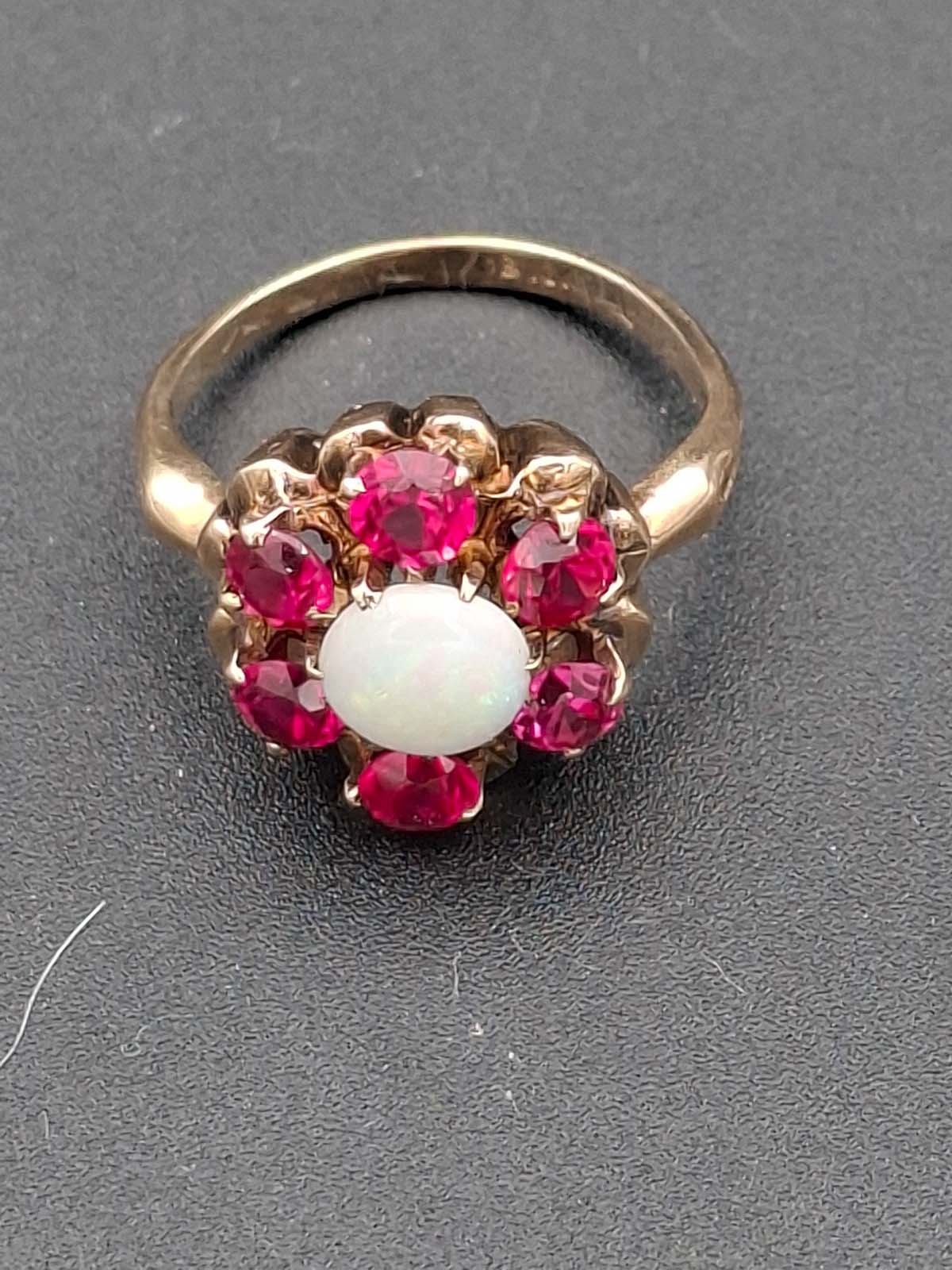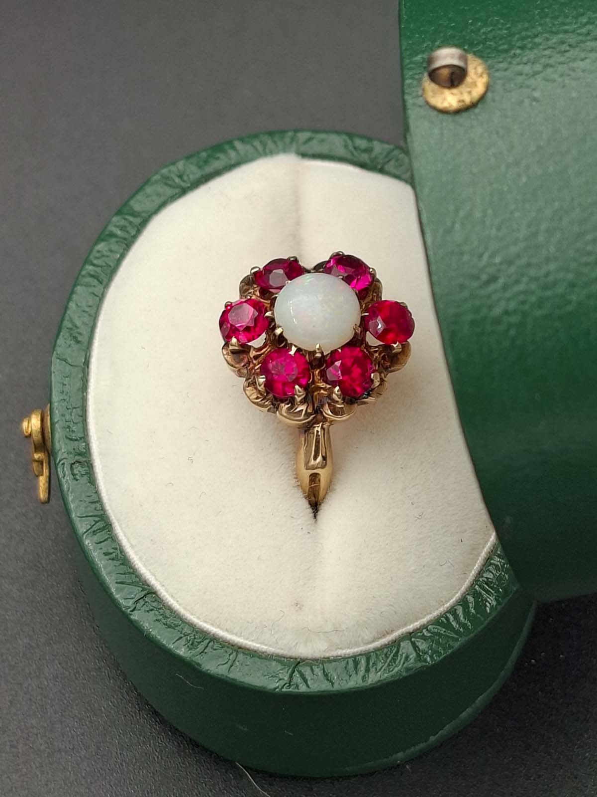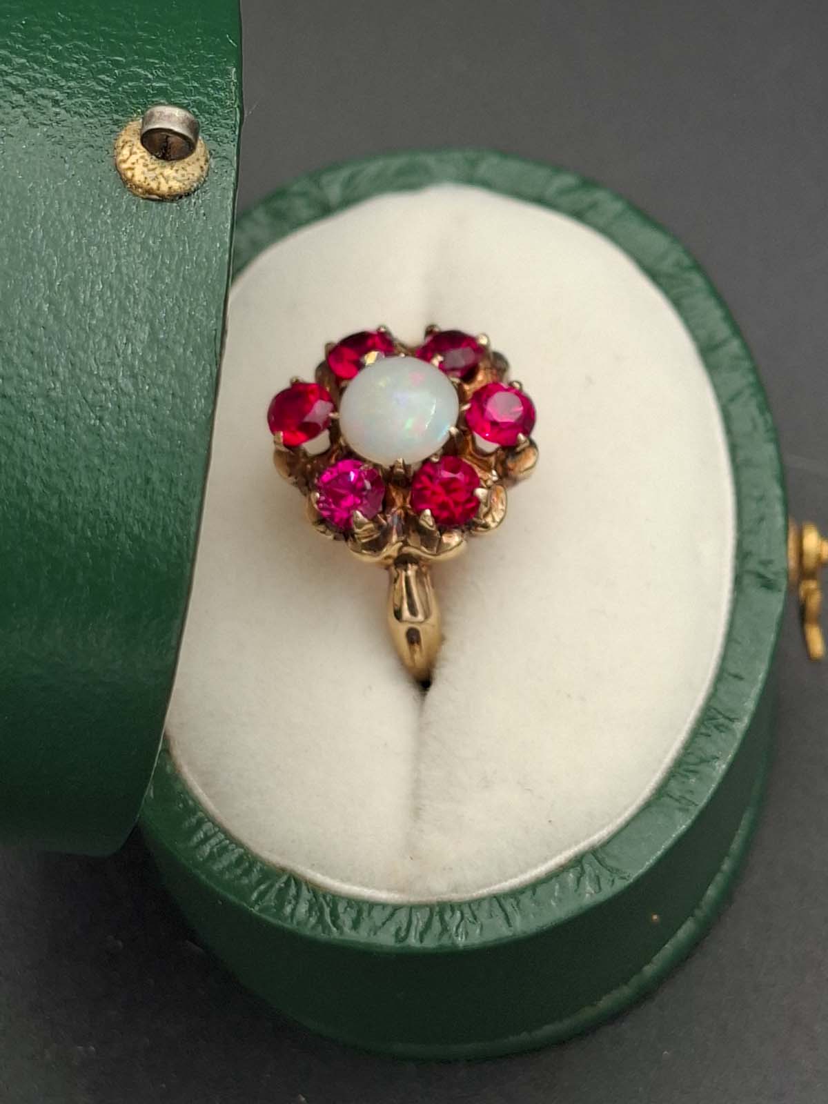 10ct Opal and Synthetic Ruby Cluster Ring (With Valuation)