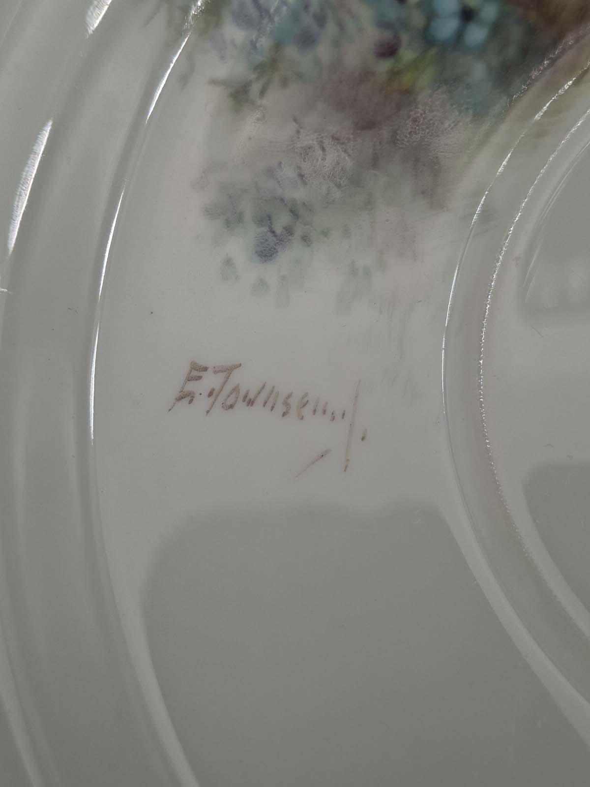 A rare and beautiful hand painted soup bowl and saucer by Royal Worcester artist Edward Townsend. Both pieces are signed and depict the small British bird the “Wren” Both pieces also have a scalloped