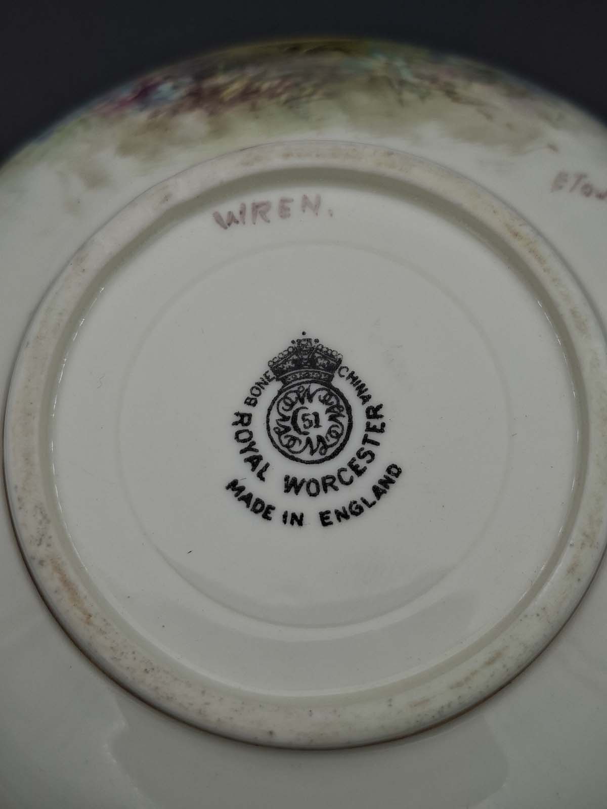 Royal Worcester Hand Painted & Signed Soup Bowl & Saucer “Wren”
