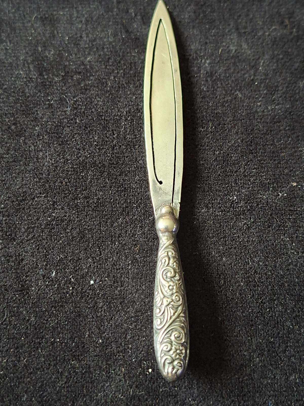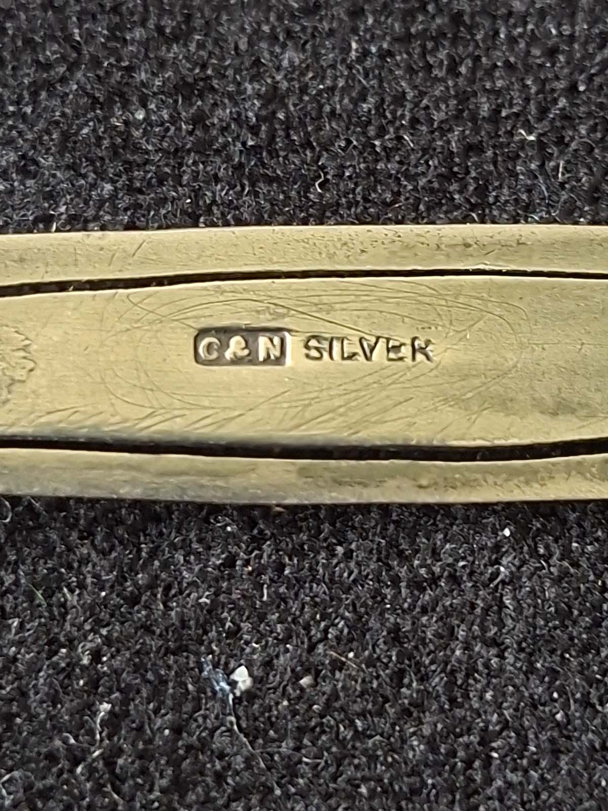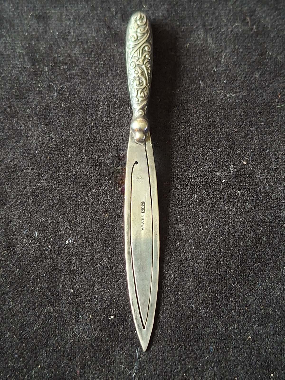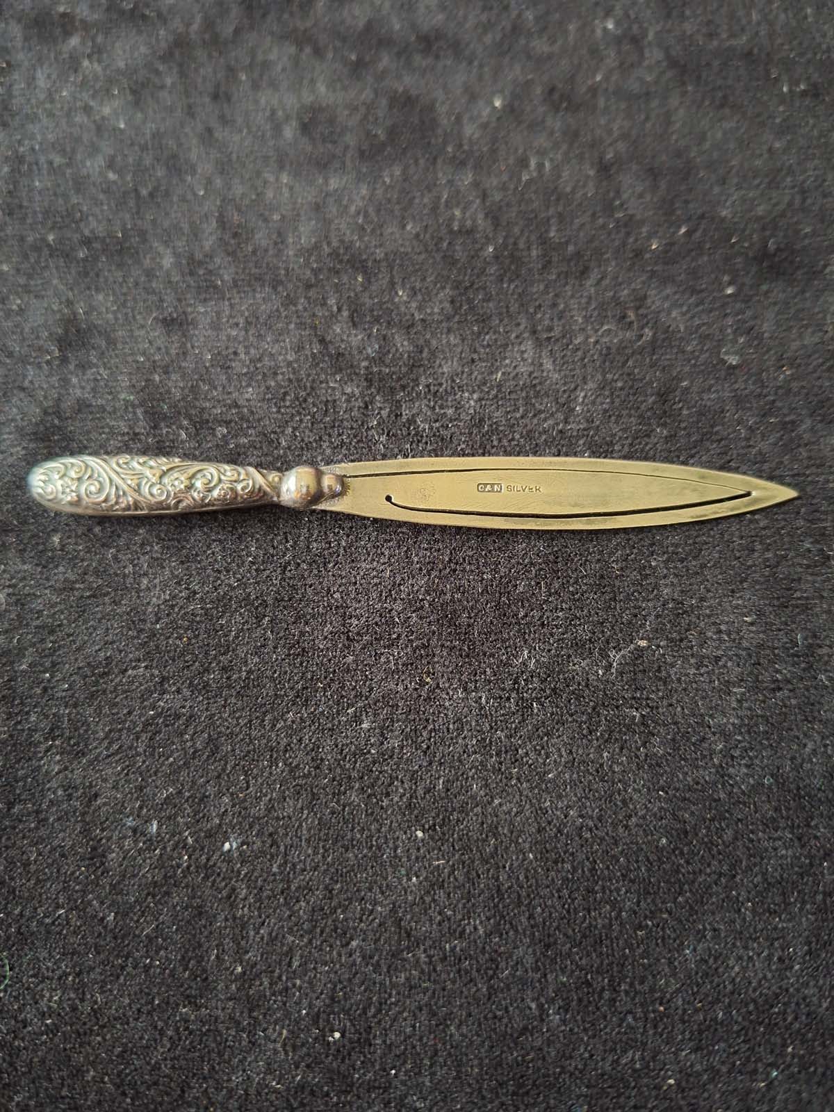 An attractive sterling silver bookmark with ornate handle, stamped “C&N Silver” probably exported to the USA in the early 1900s. Total weight is approximately 3.76g.