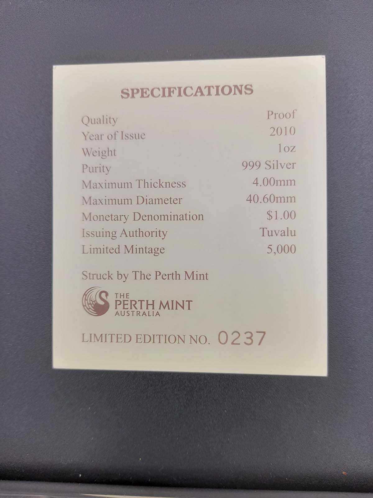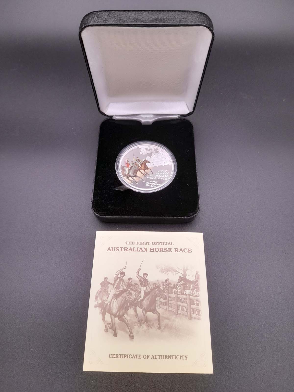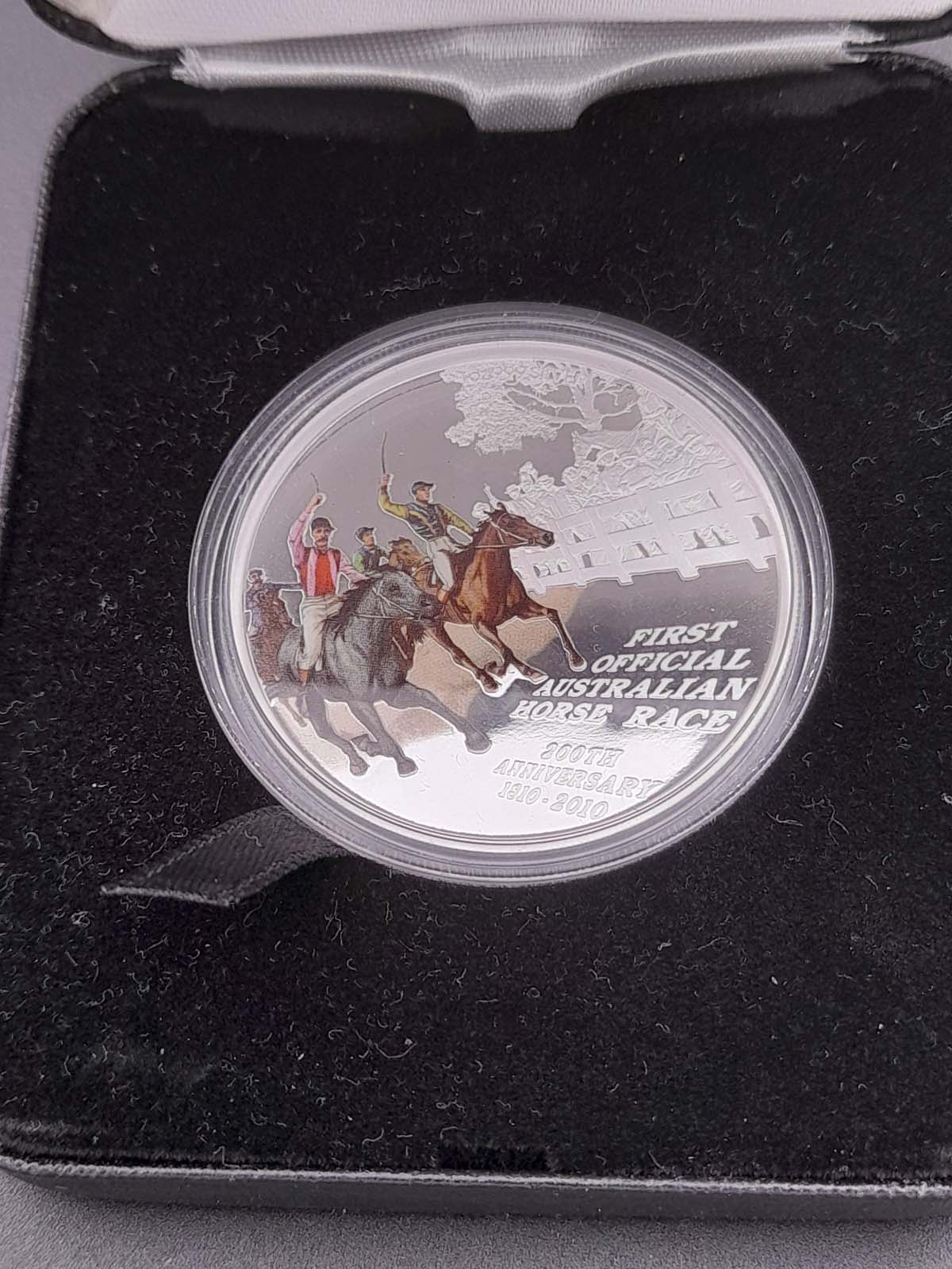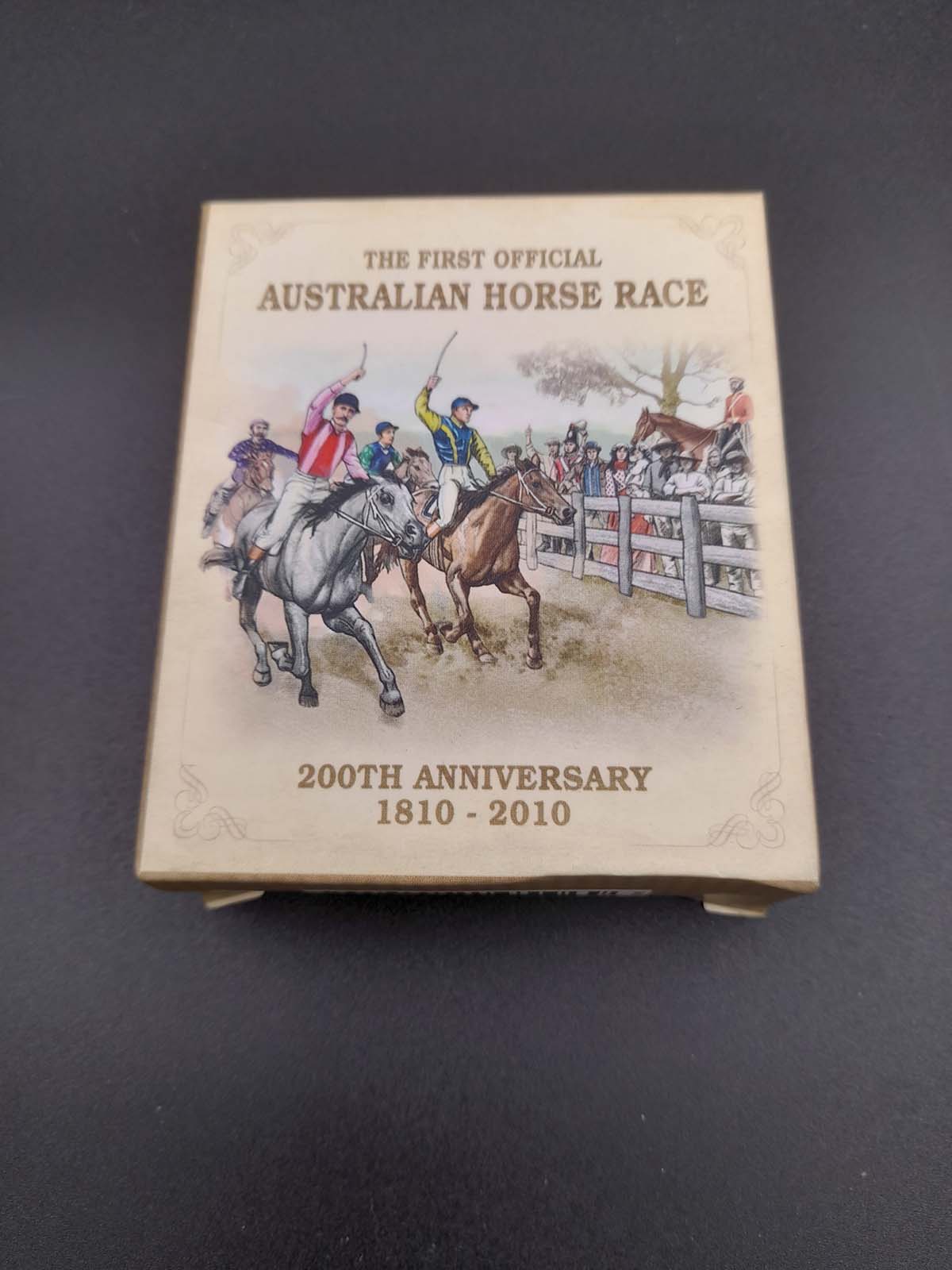 Australian 1oz Silver 999-coin commemorating “The first official Australian horse race 200th Anniversary 1810 – 2010”. A limited mintage of 5000, the limited-edition number of this coin 0237