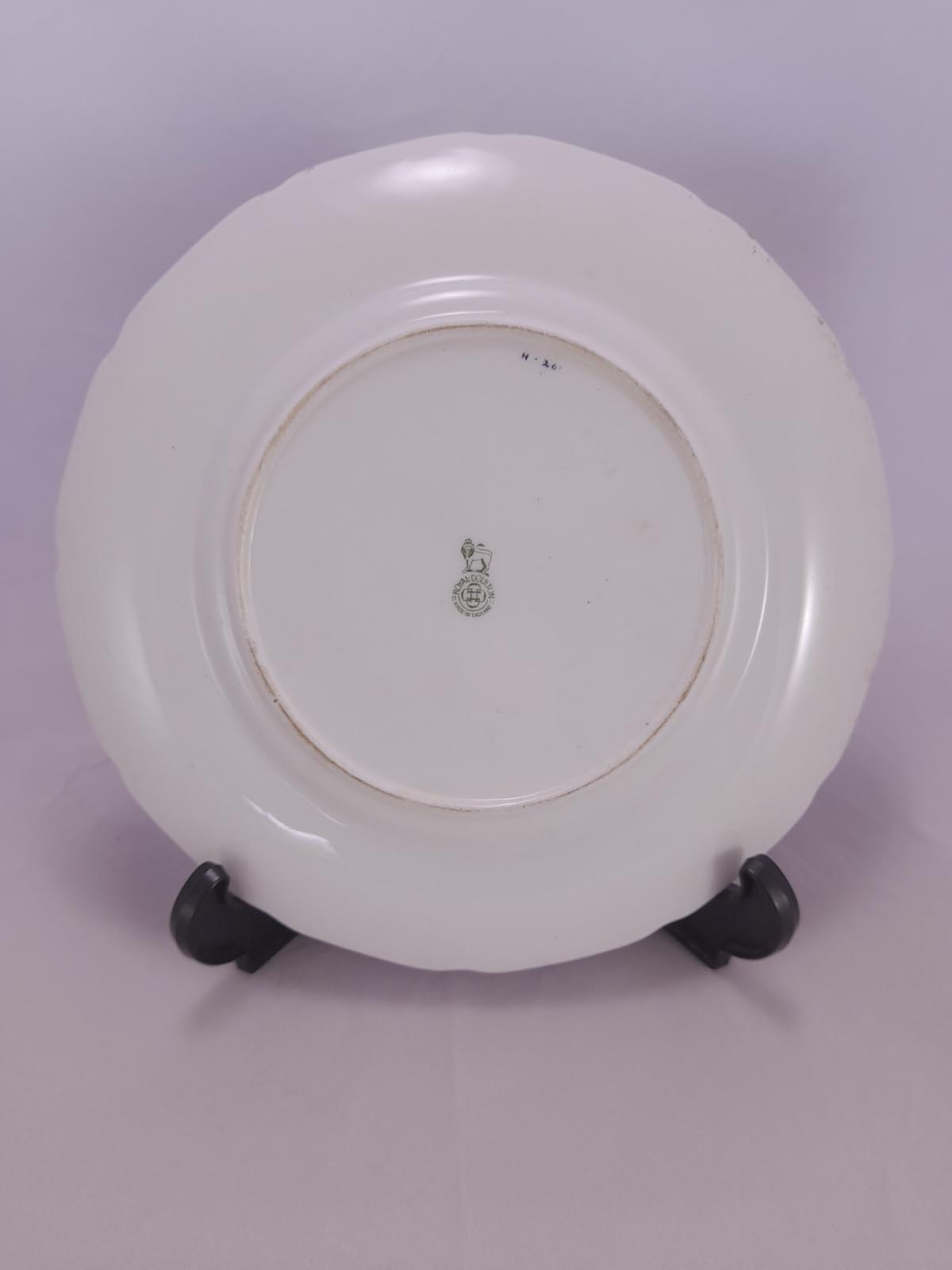A Beautiful hand painted Royal Doulton plate depicting an English country scene. The plate has a signature (indecipherable) The plate has an impressed mark to the rear of 7 – 23 Which stands for its production date of July 1923.