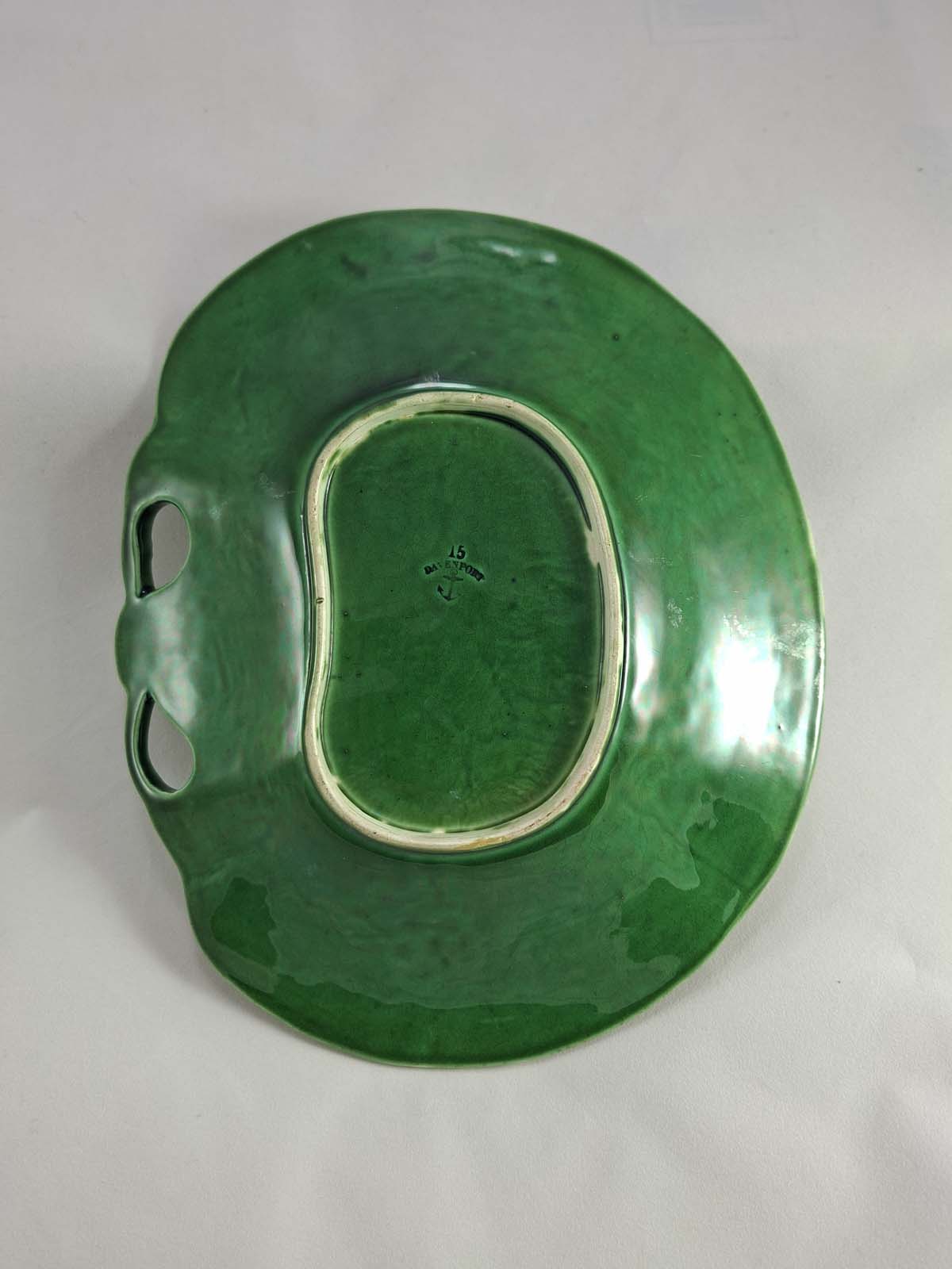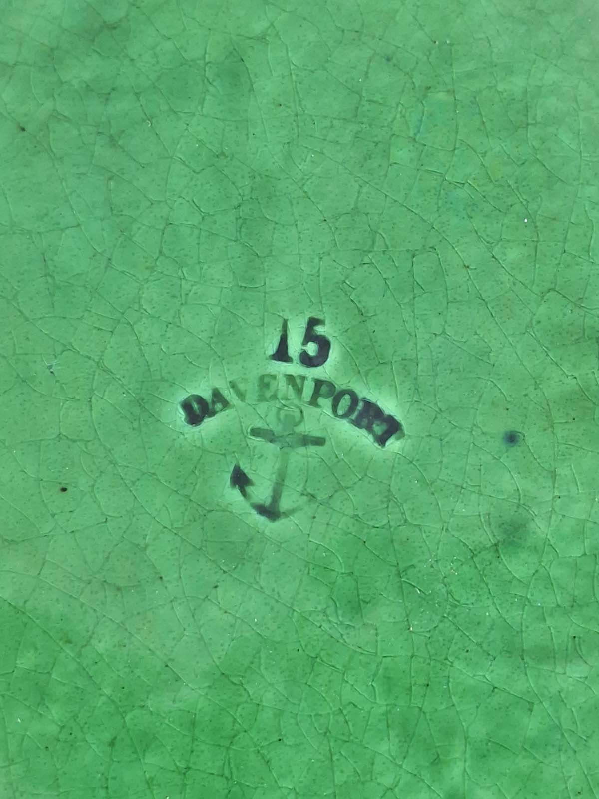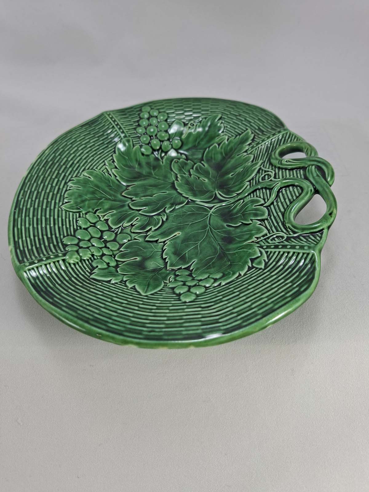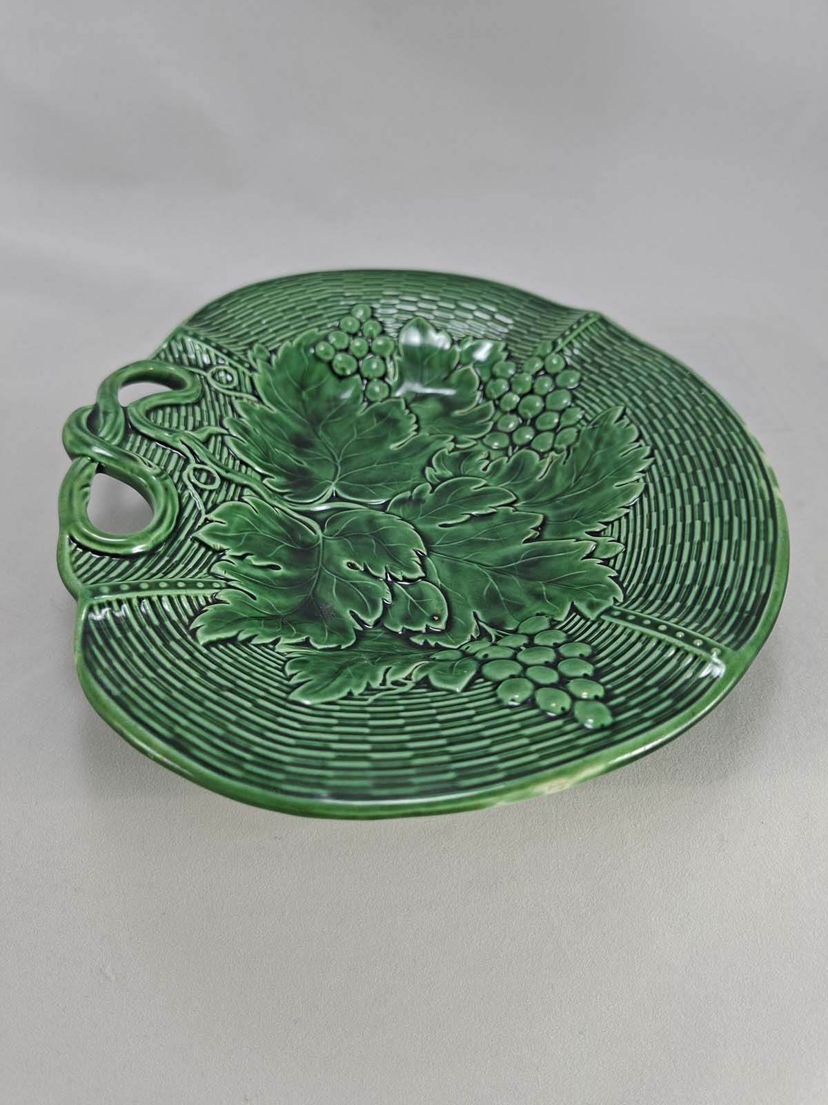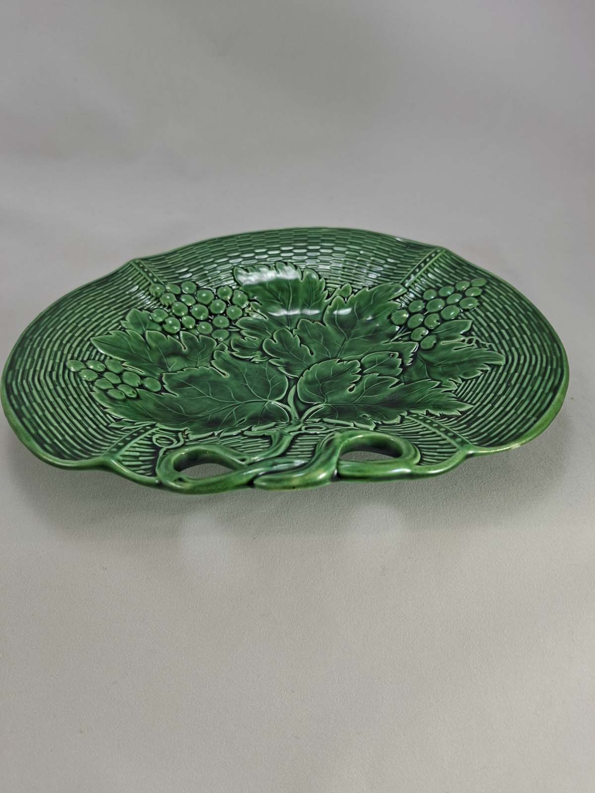A beautiful Davenport shallow majolica bowl in the vine leaf and grapes design, carrying the impressed mark to the base and the number 15 above.