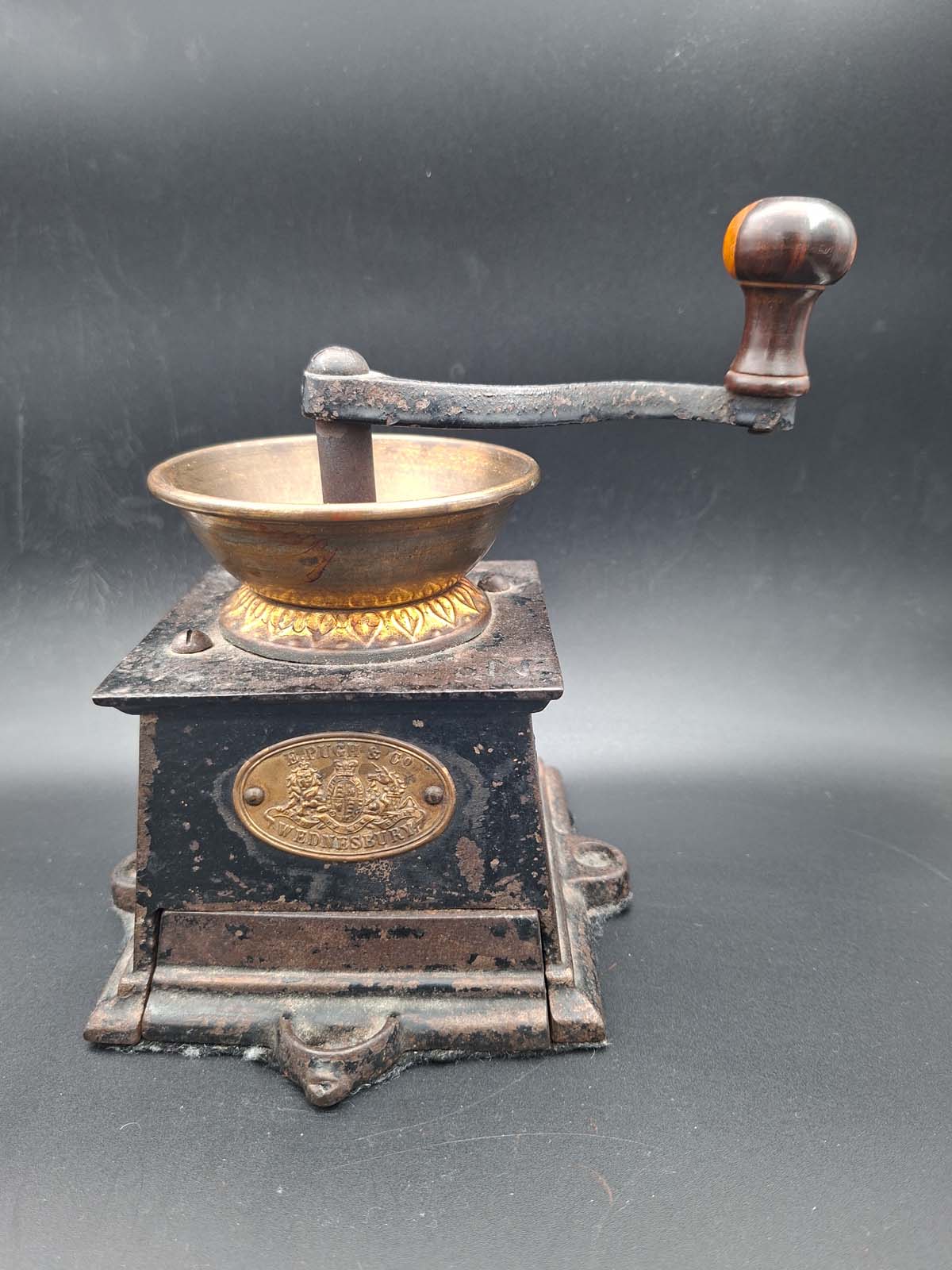 Here we have a nice cast iron coffee grinder by E. Pugh & Co of Wednesbury (West Midlands England.