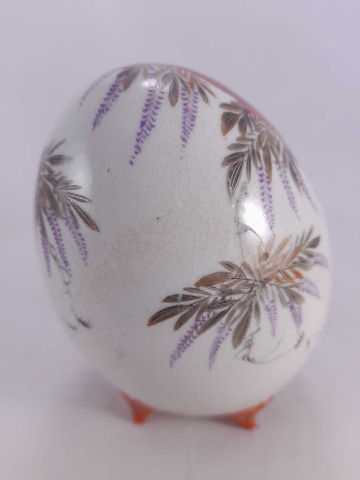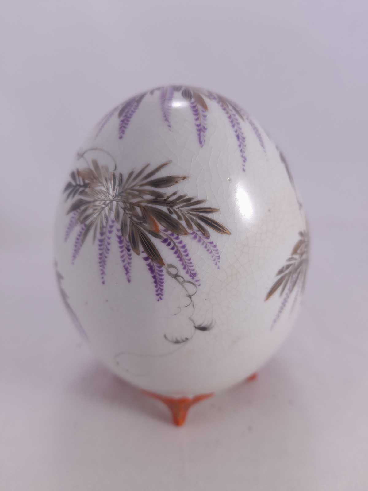 A Japanese Kutani egg shaped vase depicting floral decoration and birds.