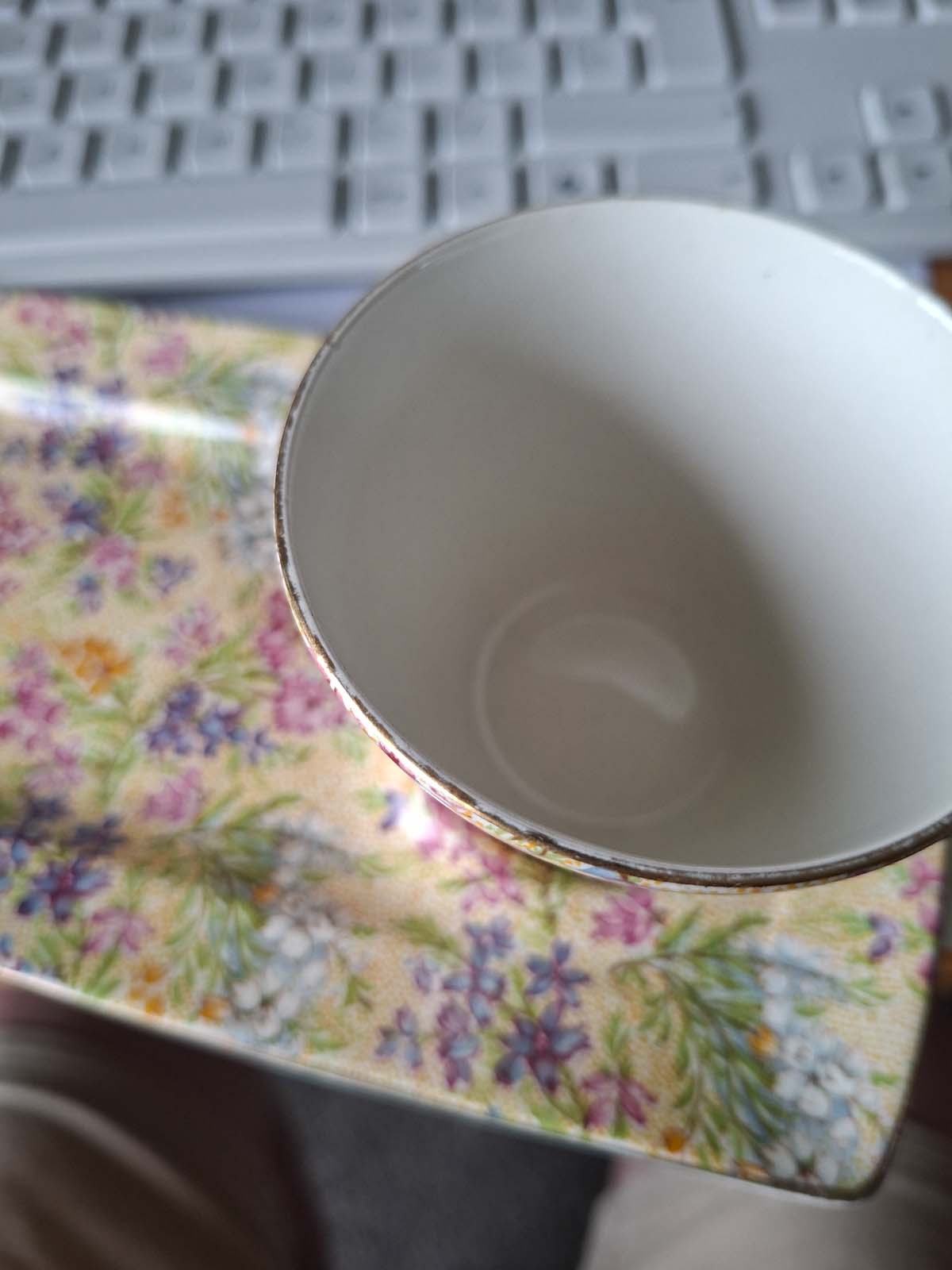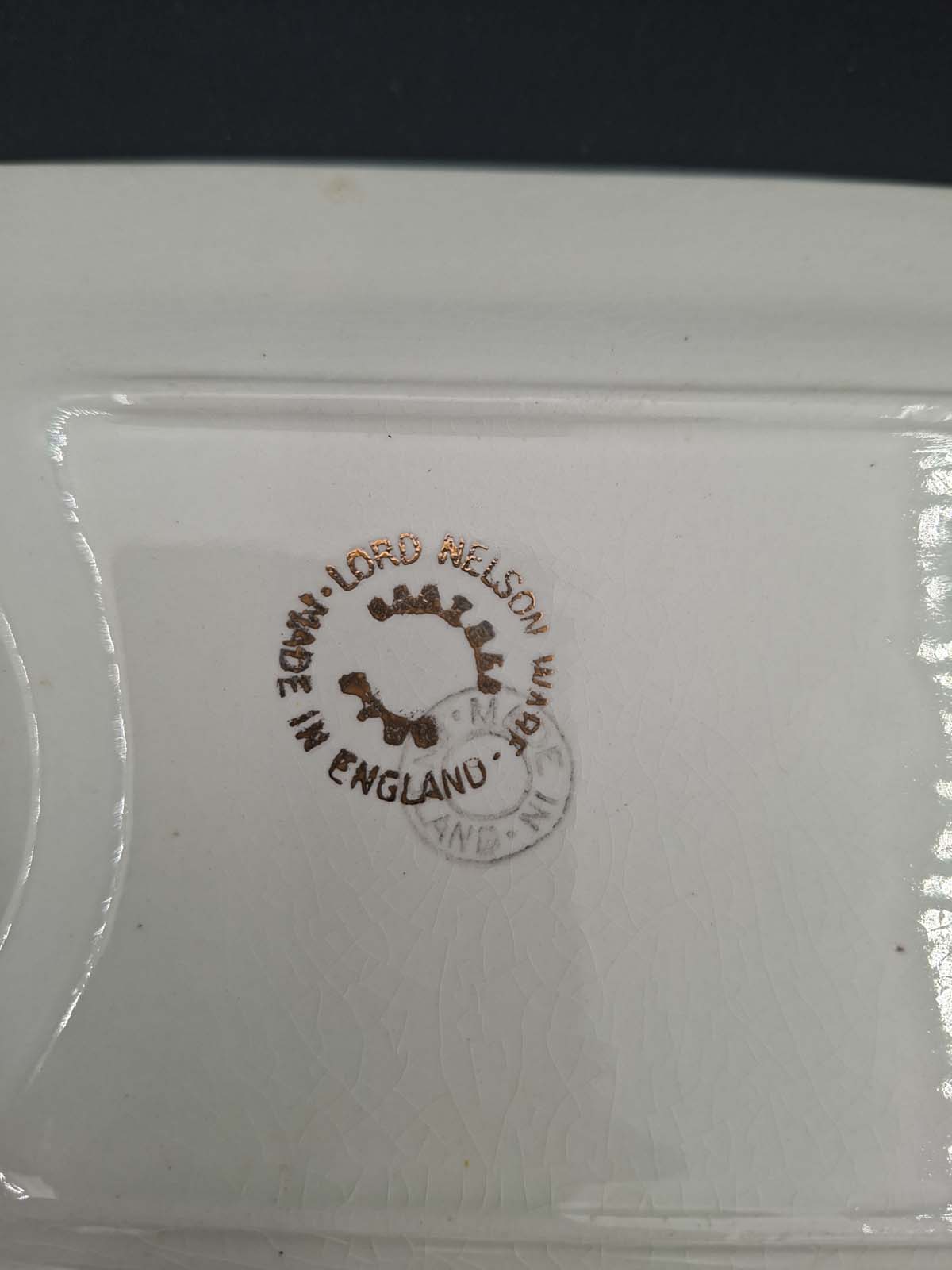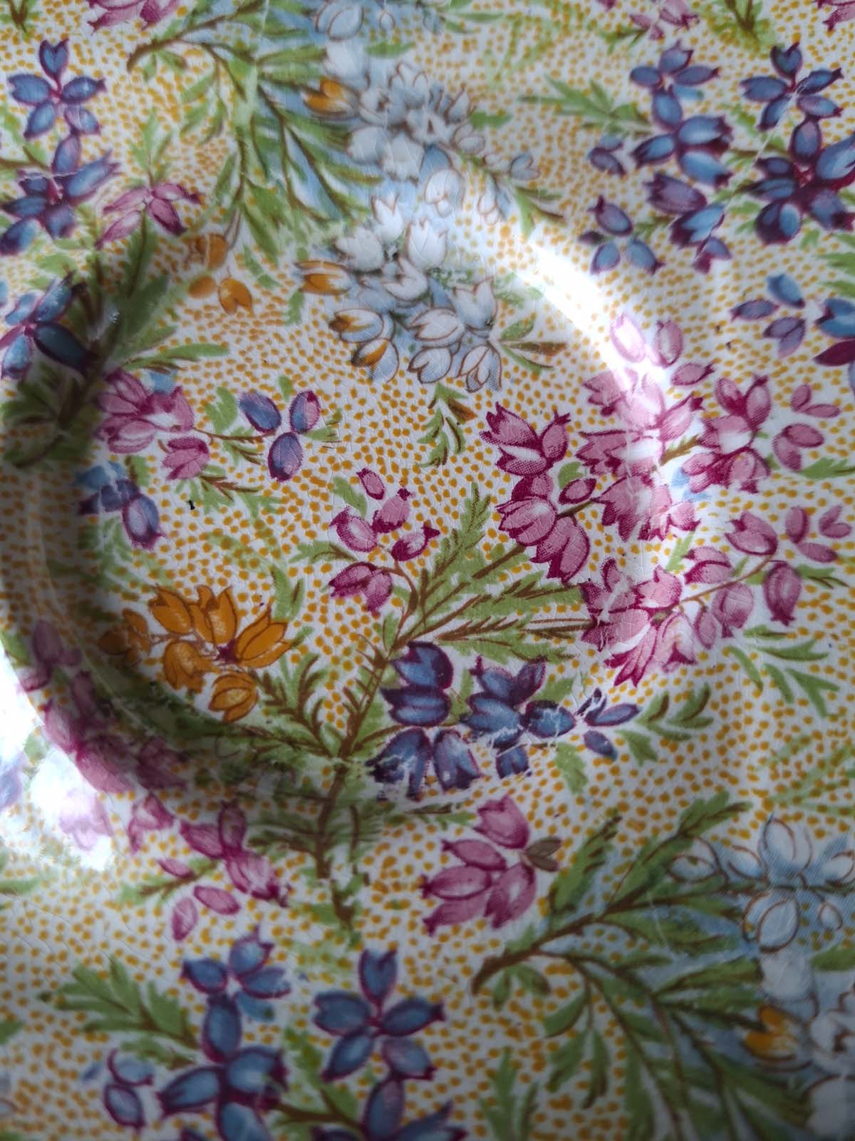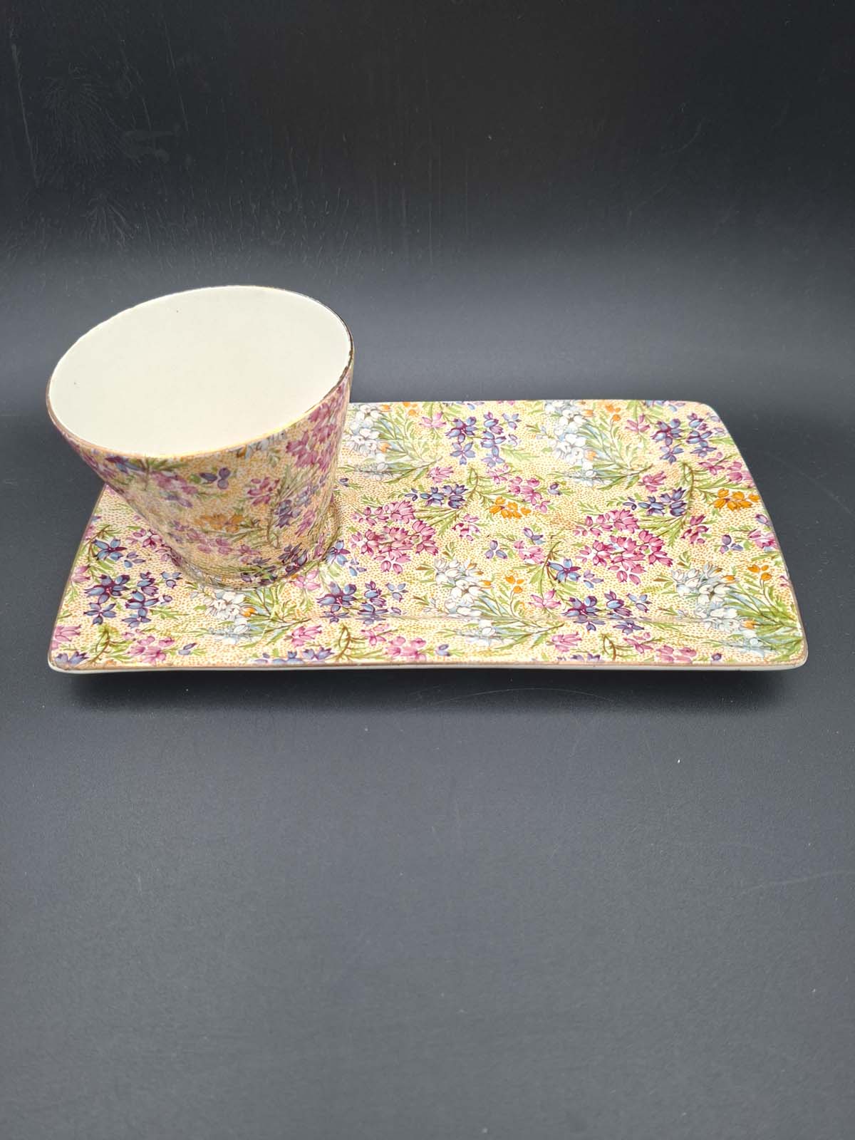 Here we have a beautiful “Heather” chintz cup and toast plate duo, made by Lord Nelson Ware England.