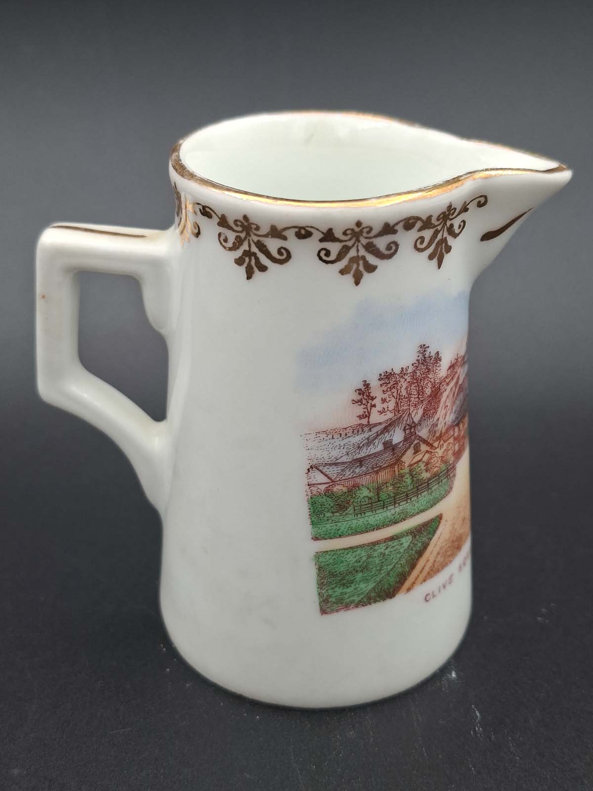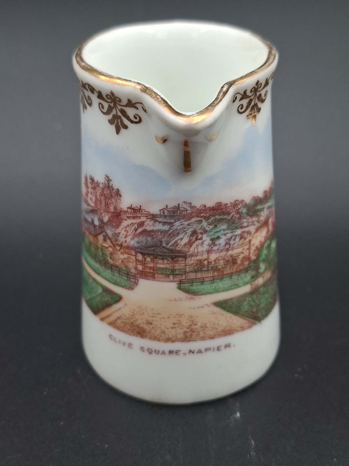 On offer here is a small souvenir jug with a depiction of early Clive Square in Napier.