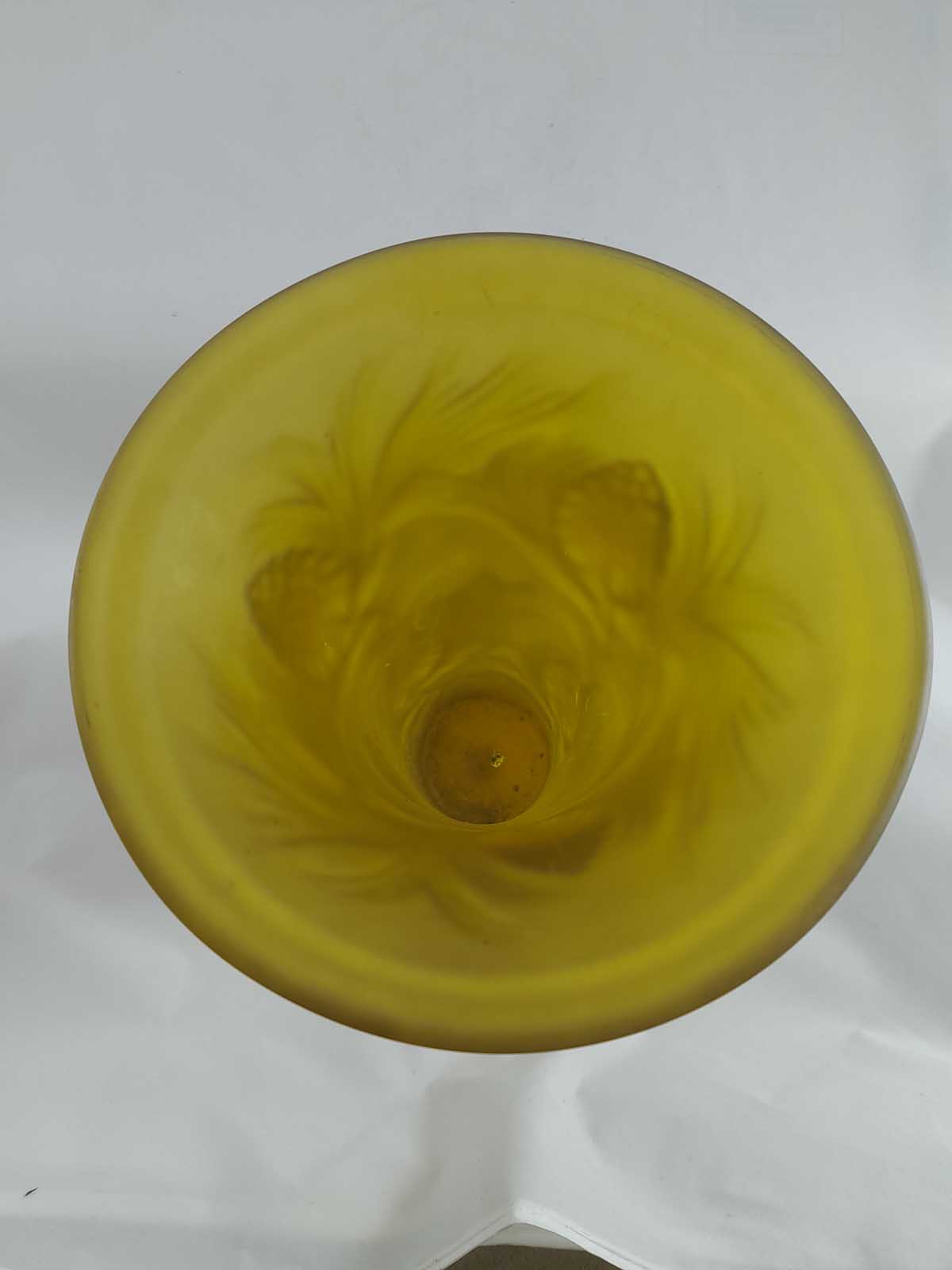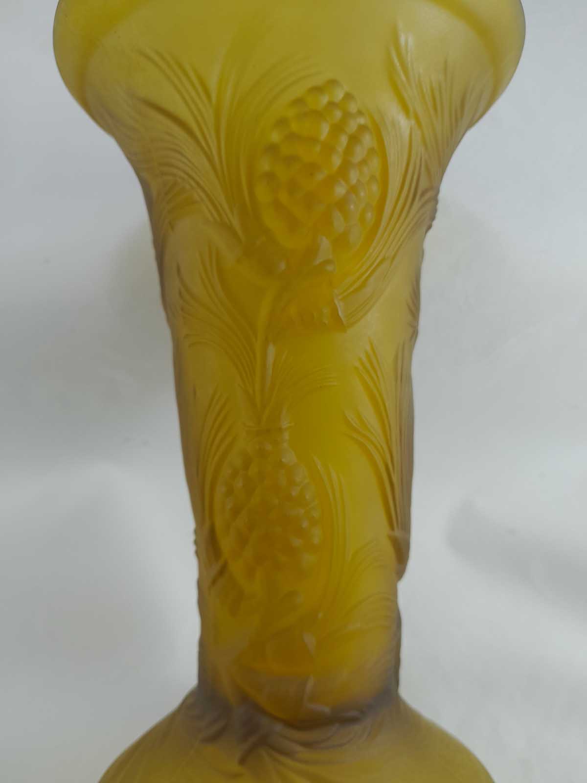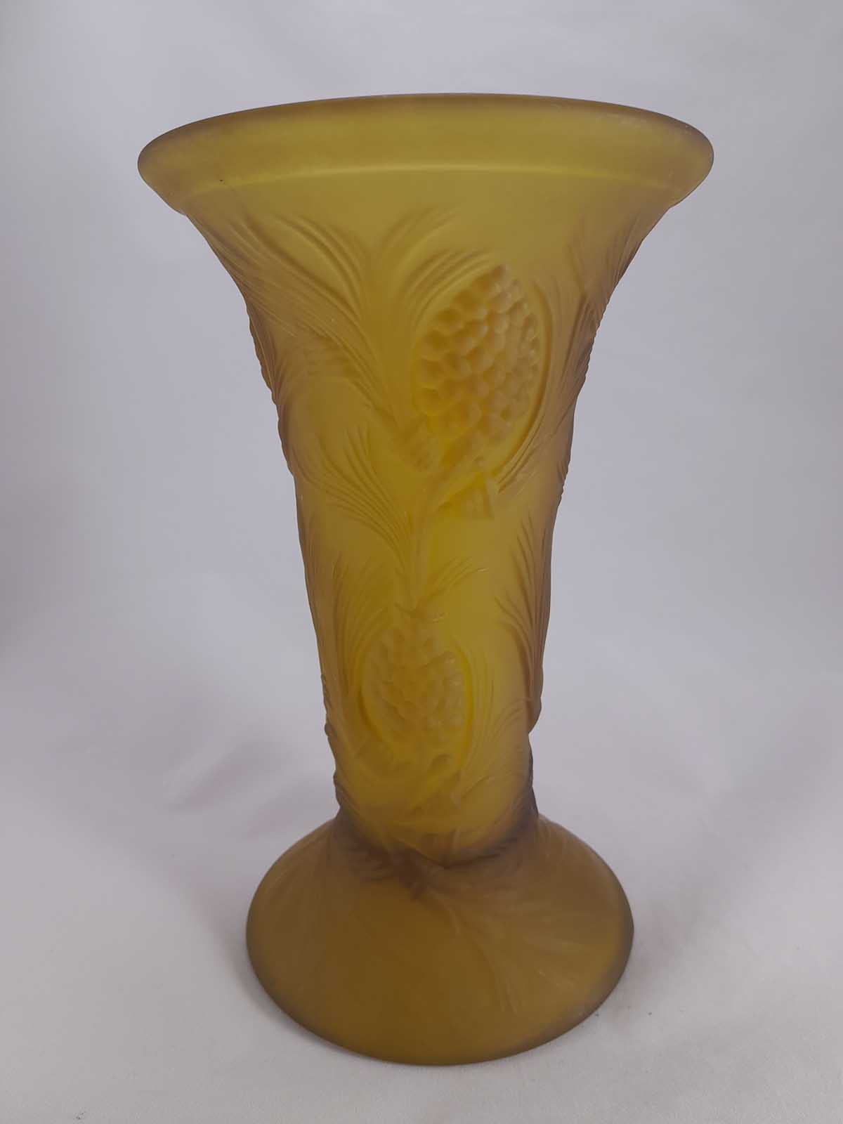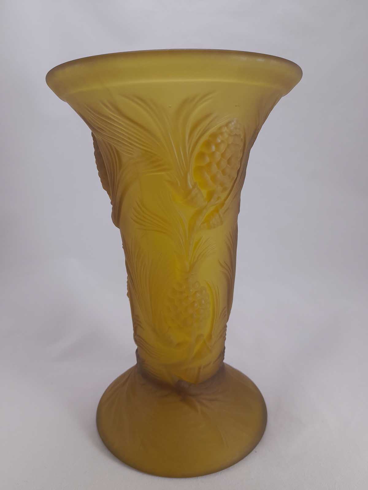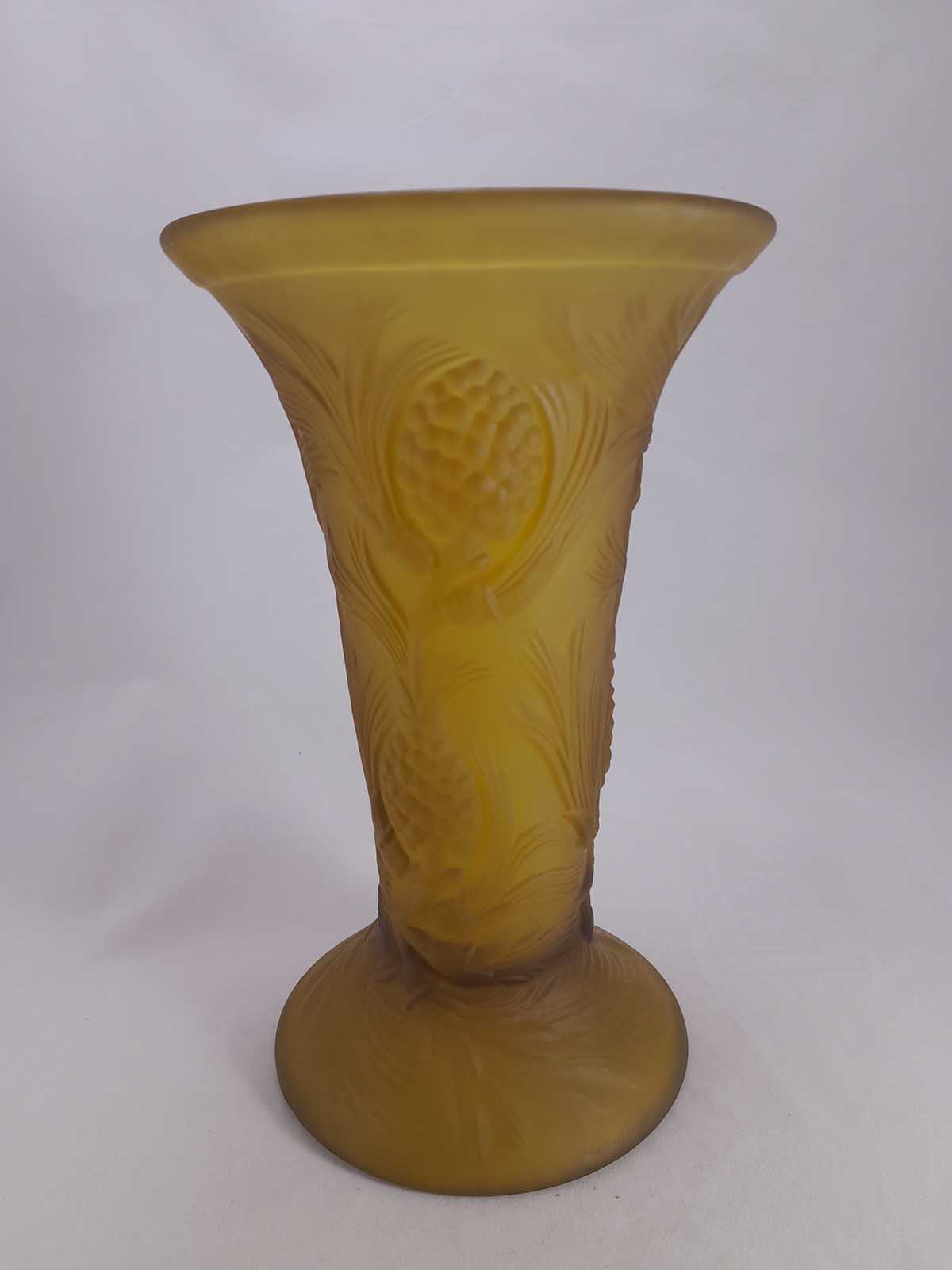 A delightful Jobling vase from the Fircone range introduced in the 1930s to rival Lalique. Very hard to find the vases in this range especially amber.