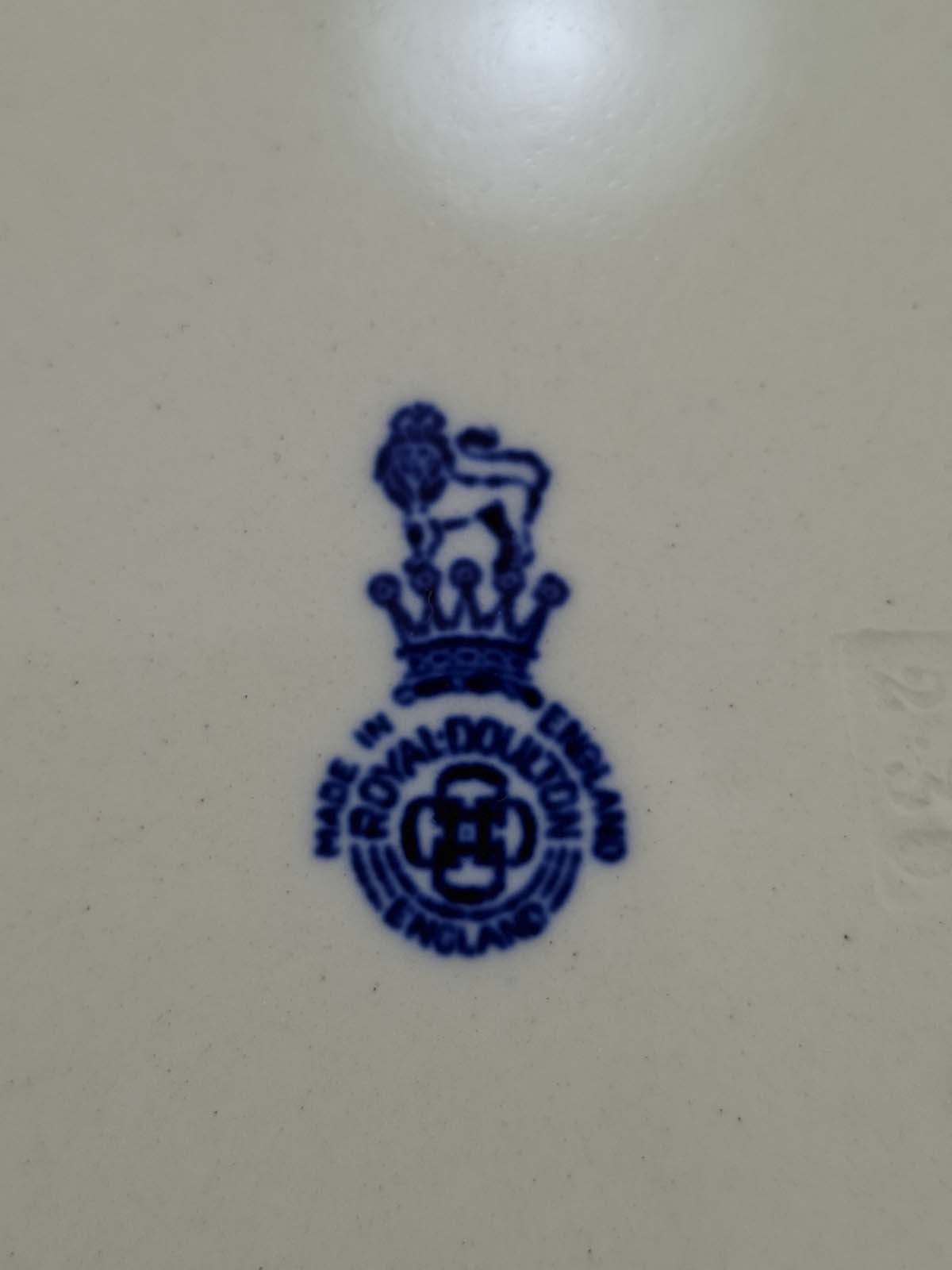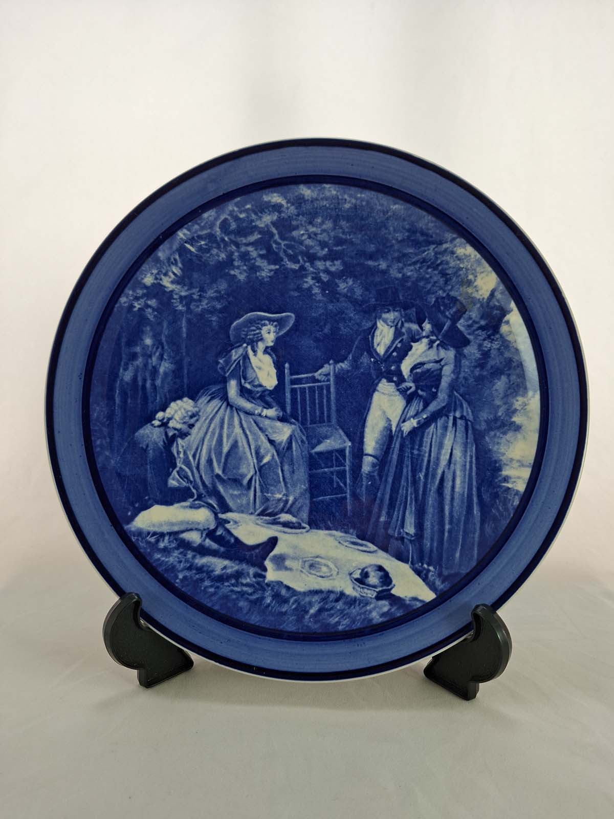 A beautiful Royal Doulton blue & white charger depicting a picnic in the woods.