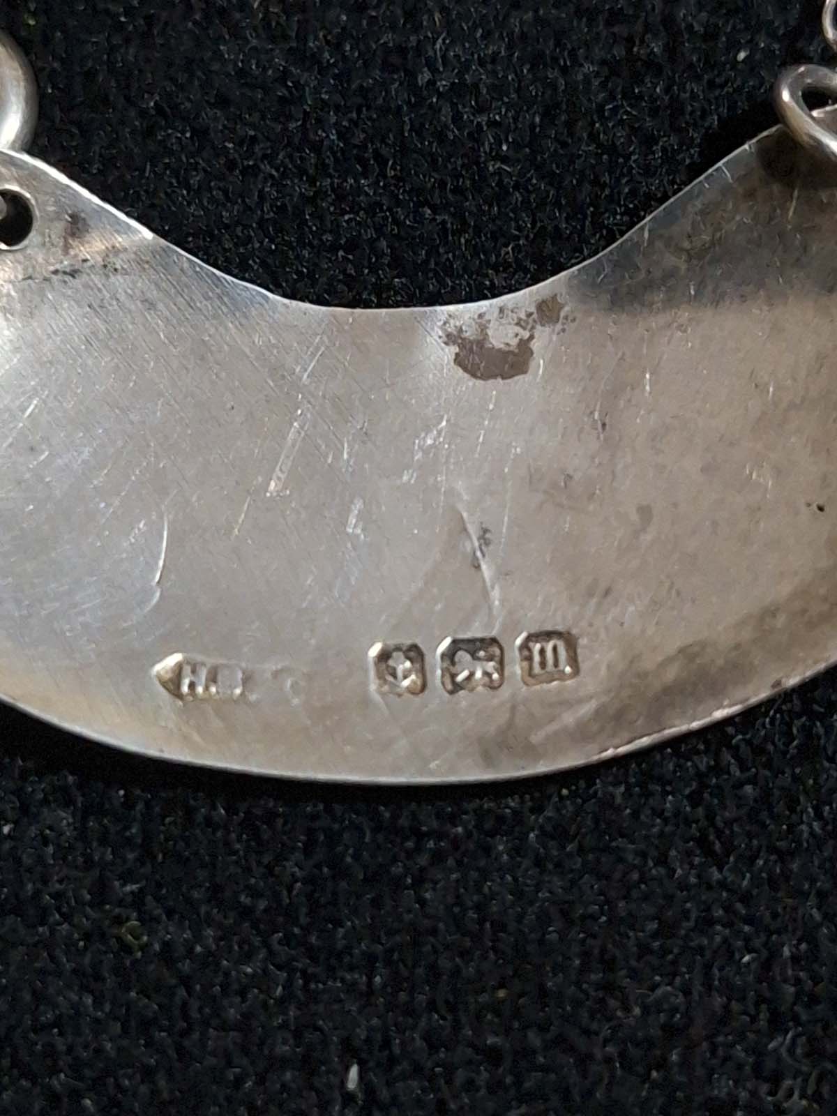 An appealing decanter label from Birmingham 1911 for “Brandy” The maker is Harold Bushell & Co Ltd. Total weight is approximately 1.8g