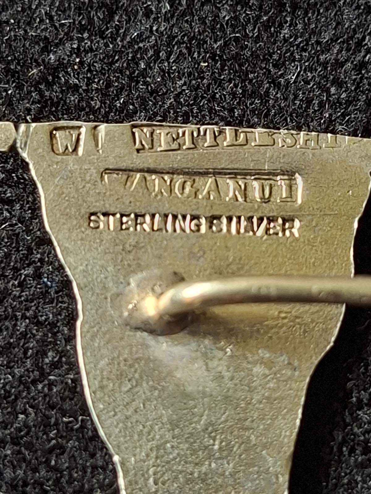 A rare rugby pin by William Nettleship (silversmith) from Wanganui in the shape of a flag or banner with WRU on it. Probably Wanganui Rugby Union or possibly Wellington Rugby Union?? Total weight appr